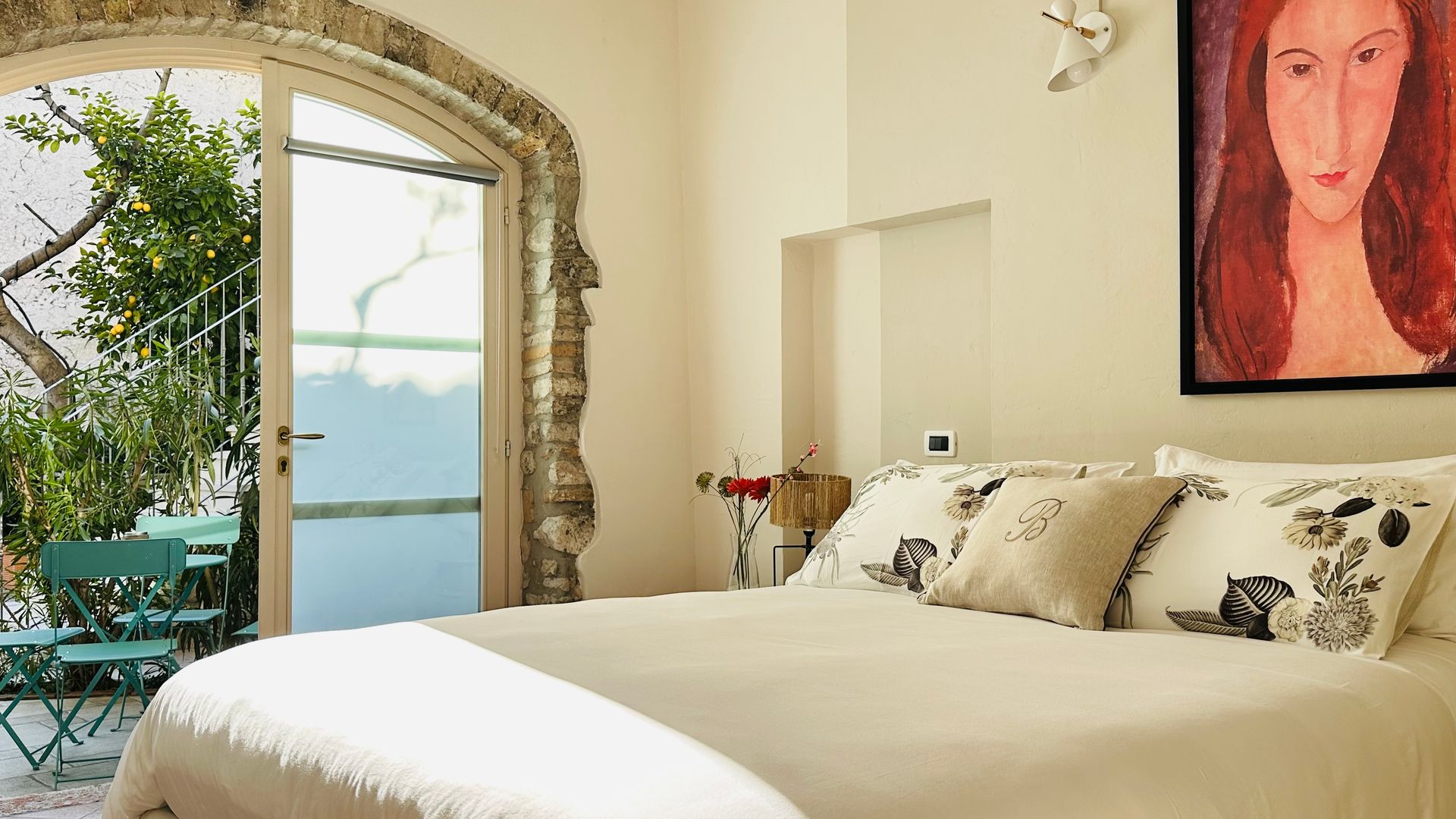 The Suite:: 25 m2 for 2 persons - bedroom with coffee and tea making facilities - ensuite bathroom - private panoramic terrace with city view.
